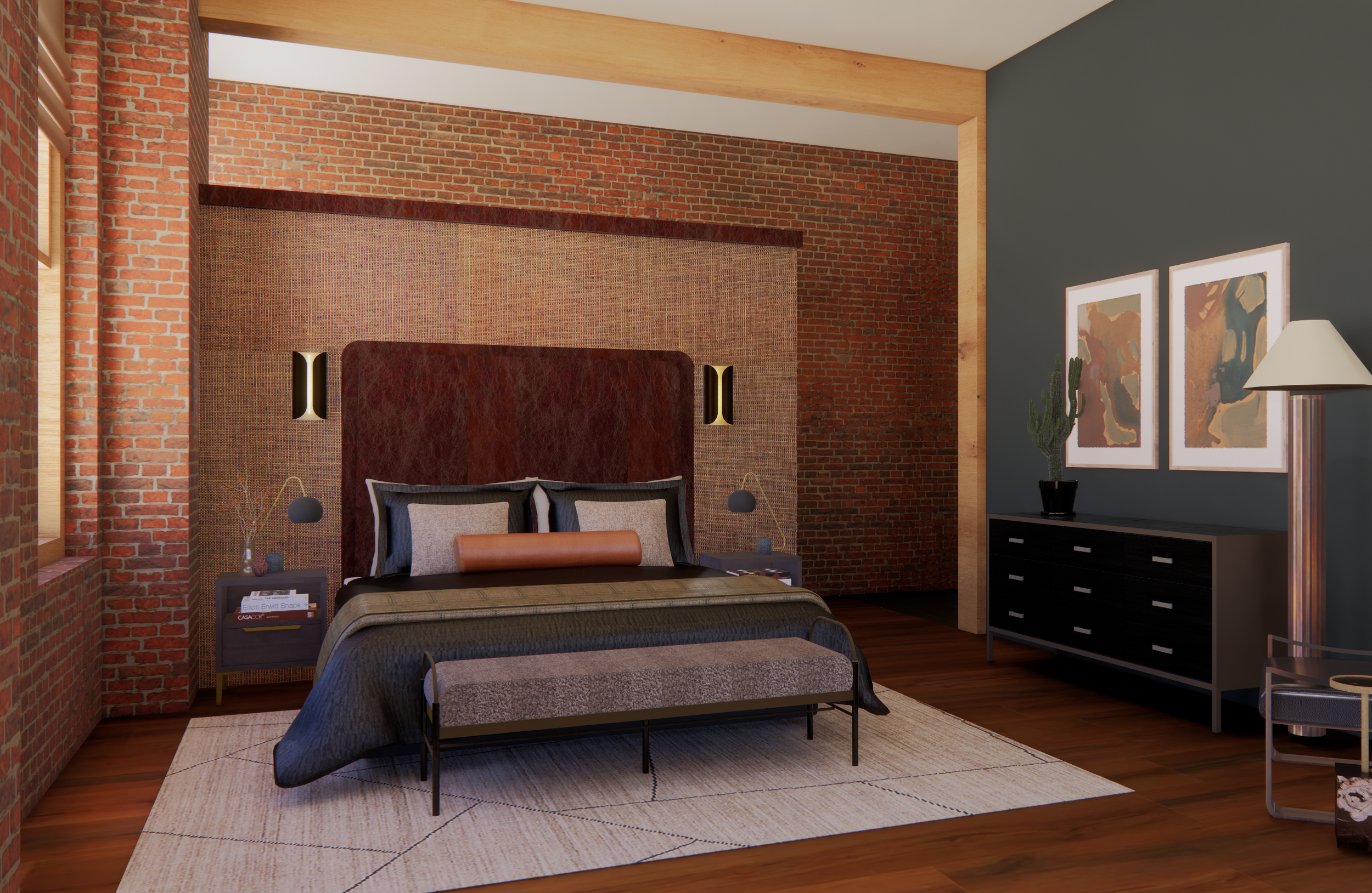 The charter for this stylish pied-à-terre in Denver’s Ballpark neighborhood was to honor the original architecture—a 1903 glass factory designed by the architect behind the iconic Brown Palace Hotel—through vintage-infused materials and a sense of history and place, while creating a fresh, elevated experience. Patinated metals, leather, tweeds, and richly layered fabrics, paired with organic forms and saturated, pigmented color, anchor the design against the existing brick and original wood beams.